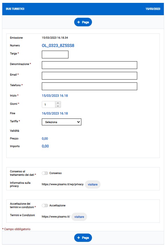E’ consentita la possibilità di acquistare i permessi dei bus turistici, tramite app o da questo sito internet, senza necessità di autenticarsi e quindi senza la creazione di un proprio account utente.