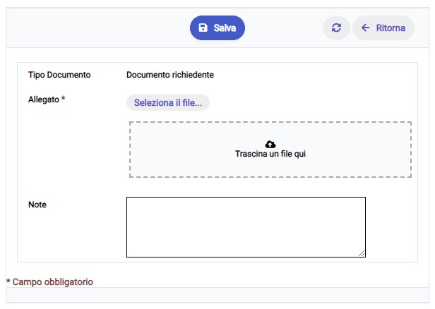 Oltre agli allegati generati automaticamente dall’applicativo è possibile inviare ulteriore documentazione, che si ritenesse utile ai fini della richiesta, cliccando sul bottone “Invia Documento” presente nella lista delle richieste.